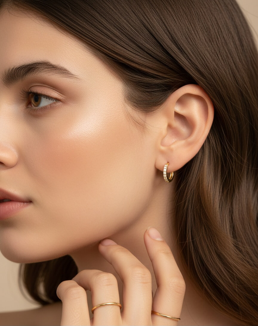 עגילי חישוק דגם האגיס- משובצים זרקונים קלאסיים