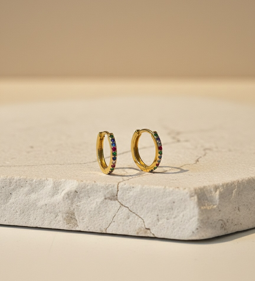 עגילי חישוק דגם האגיס צבעוני משובצים זרקונים במספר צבעים וגוונים